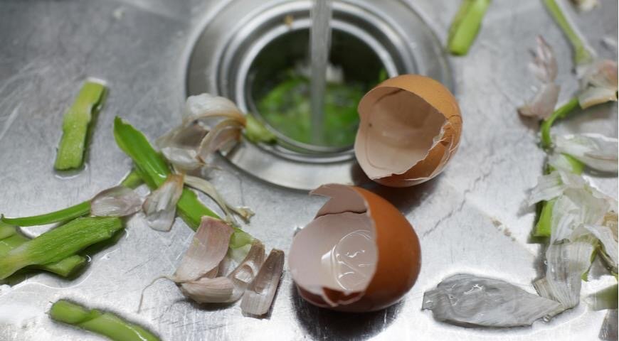 - Яичная скорлупа: Она может привести к повреждению канализационной системы, поэтому лучше избегать её попадания в раковину.