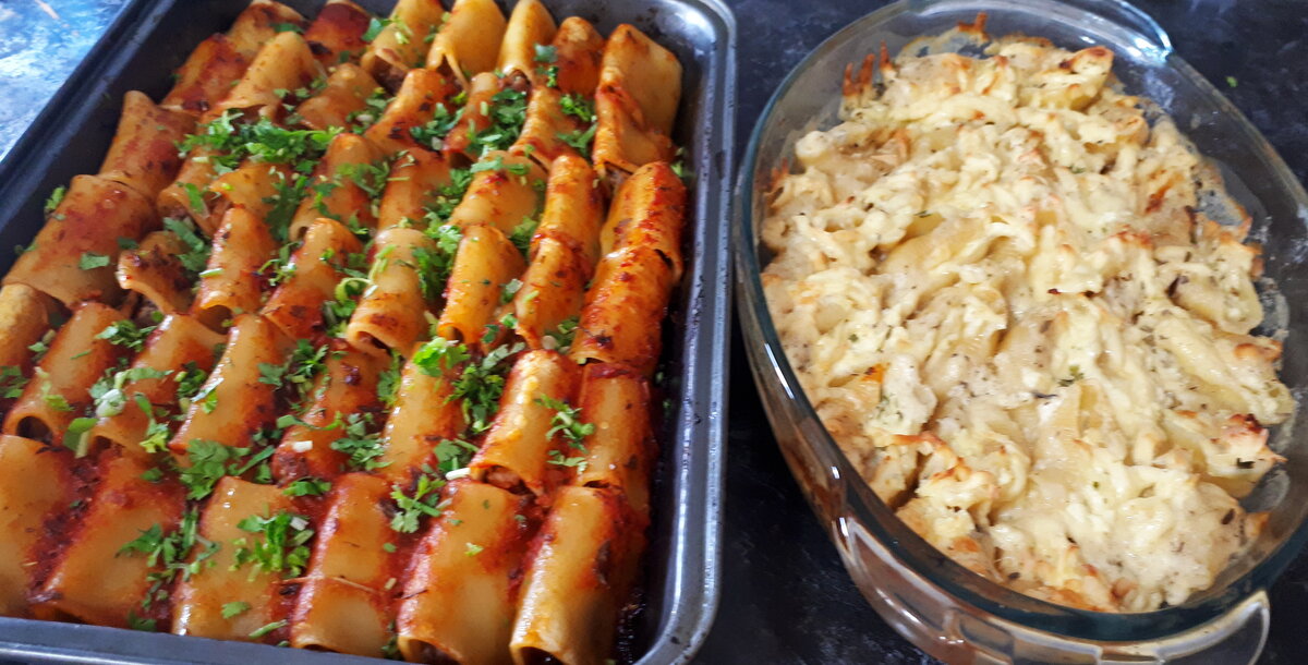 - 2 упаковки макарон для фаршировки и запекания