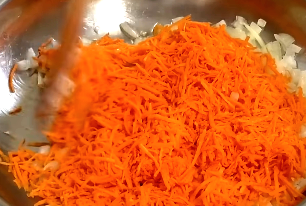 Лук очищается, нарезается кубиками и помещается на разогретую сковороду с растительным маслом. Как только он становится прозрачным, добавляется морковь и обжаривается до мягкости. Затем капусту тонко нашинковать и слегка помять для улучшения текстуры. Если используется молодая капуста, этот шаг можно пропустить.