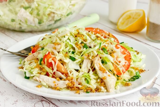 Салаты из моркови, перца и орехов, а также свежей капусты с курицей и горчичной заправкой завершат эту увлекательную кулинарную экскурсию.