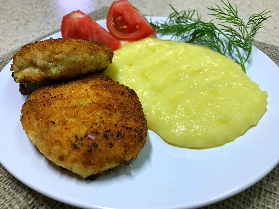 5. Сформированные котлеты панируются в сухарях и обжариваются до золотистой корочки с обеих сторон.