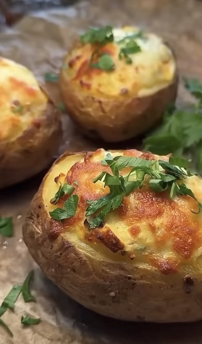 - Начинку укладываем обратно в картофельные «лодочки».