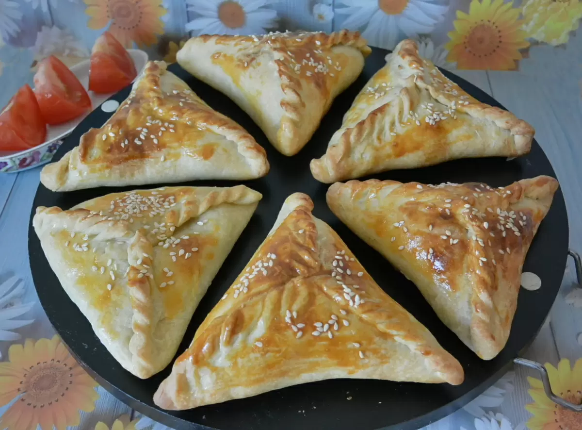 В центре каждой лепешки укладывают начинку, добавляют небольшой кусочек сливочного масла, придают форму и переносят на противень с пекарской бумагой. Сверху курники покрываются желтком и можно посыпать кунжутом для создания аппетитной корочки.