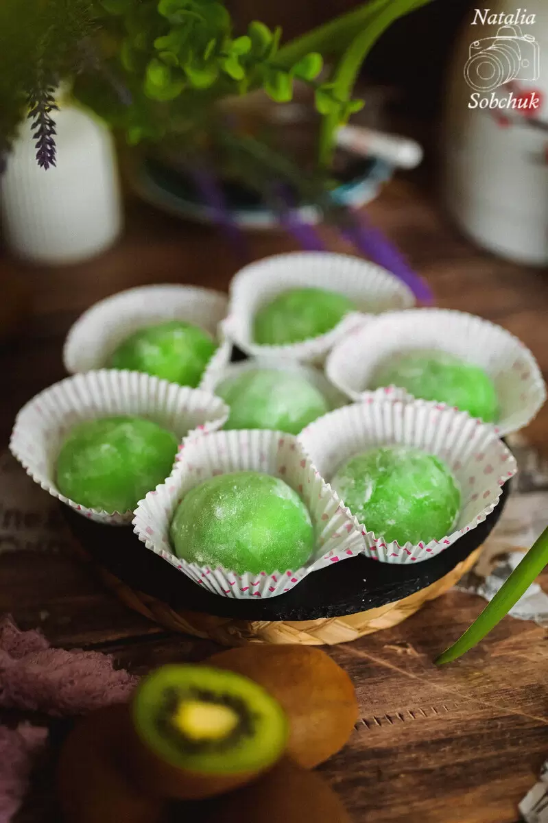 Известные японские пирожные моти завоевывают сердца гурманов по всему миру, и не зря! В этом рецепте предлагается оригинальное сочетание с кисло-сладким конфитюром из киви и нежным сливочным муссом. Этот десерт станет отличным выбором для угощения на праздники или просто для приятного чаепития.