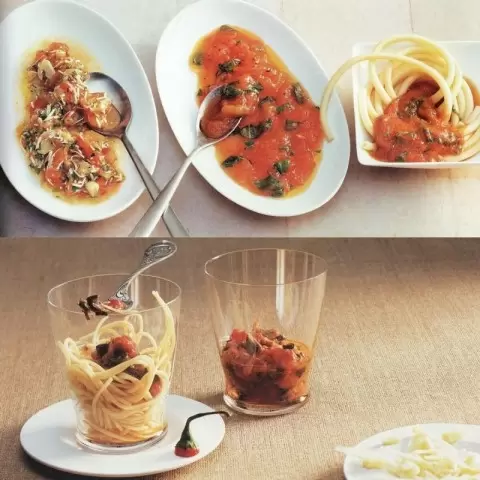 - Чем толще паста, тем более насыщенным может быть соус. К примеру, макароны прекрасно сочетаются с соусом болоньезе, а изящные тальолини — с легким томатным соусом.
