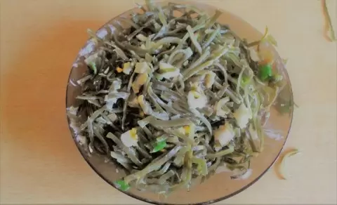 Один из самых интересных способов использовать морскую капусту — это приготовить «Салат из морской капусты с копчёной мойвой». Этот салат станет отличным гарниром или самостоятельным блюдом на вашем столе.