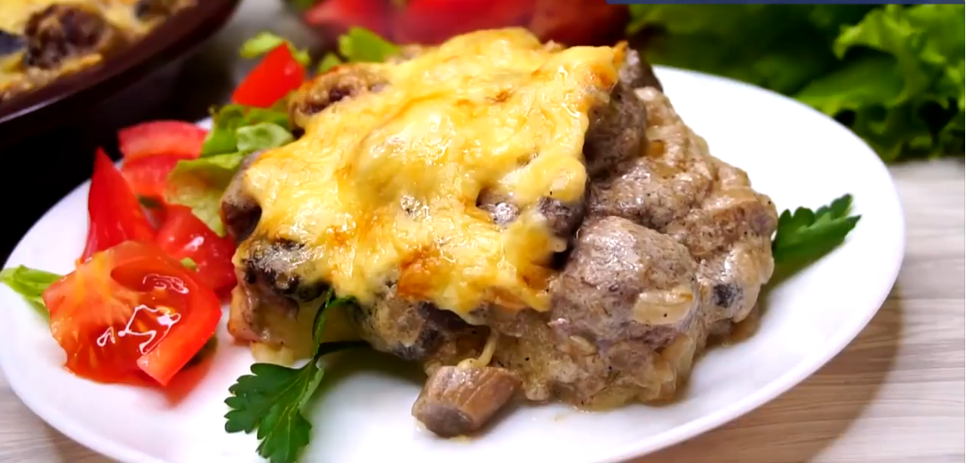 Сначала отварите картошку с добавлением соли. Параллельно займитесь фрикадельками: измельчите лук и чеснок, смешайте с фаршем, добавьте соль и перец, а затем сформируйте фрикадельки. Обжарьте их в растительном масле до золотистого цвета, добавьте лук и грибы, тушите с добавлением сметаны.