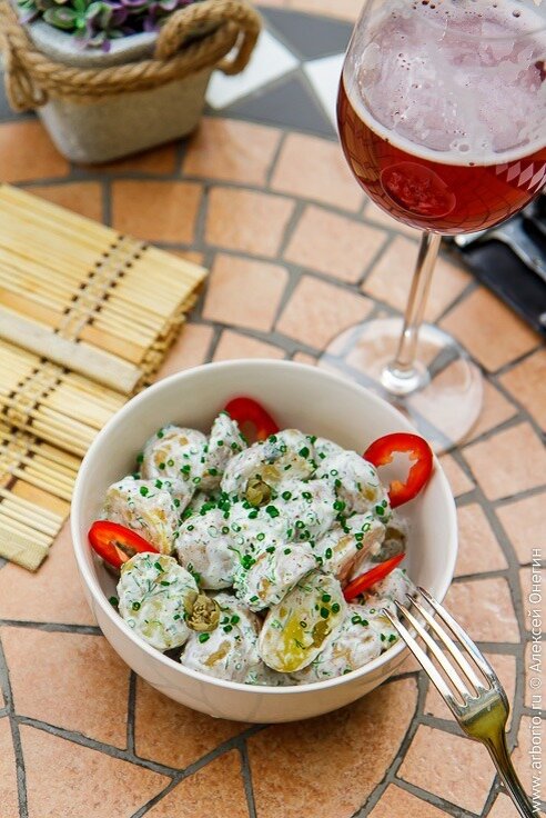 После этого картофель остужается, нарезается на кусочки и смешивается с остальными ингредиентами: сметаной, лимонным соком, каперсами и свежими травами. Приправить смесь стоит по вкусу с добавлением чёрного перца и соли. В результате получится вкусный и сытный салат, который станет отличным дополнением к любому блюду.