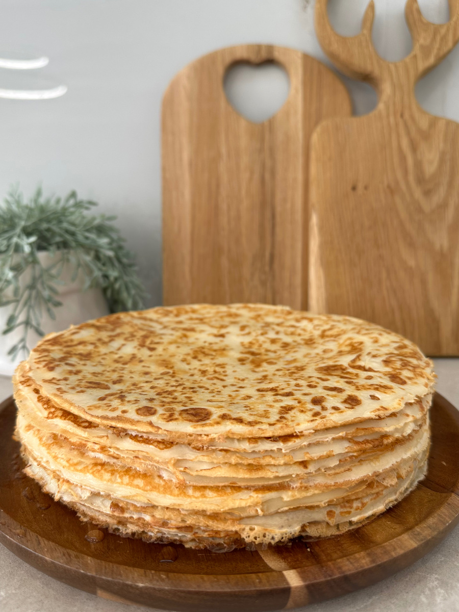Все ингредиенты должны быть при комнатной температуре. При желании можно уменьшить количество каждого компонента вдвое, если вы не планируете готовить много блинов.