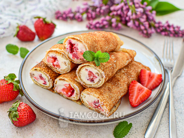 Идеальные блины с маскарпоне и клубникой