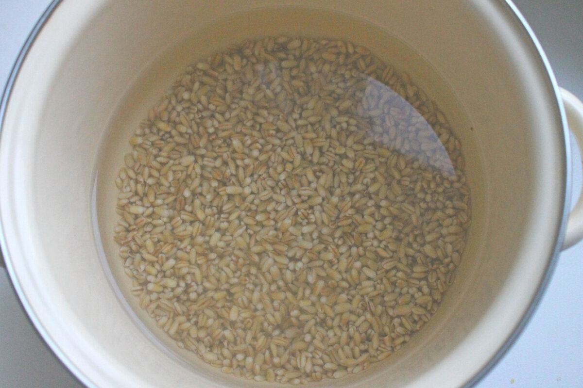 Перед тем как начать, нужно хорошенько промыть перловую крупу, убрав всю пыль и мусор. После этого залейте крупу теплой водой и оставьте на 20 минут — так она станет мягче.