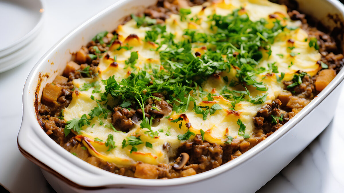 Запеканка Пармантье удивляет своим богатым вкусом. Нежное картофельное пюре, покрытое хрустящей корочкой, прекрасно сочетается с ароматным мясным фаршем. Если добавить сыр, верх станет особенно аппетитным, а лук и чеснок добавят насыщенности. Это блюдо воплощает домашний уют и эстетику французской кулинарной традиции.