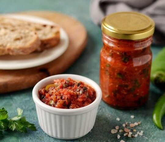 Акоржак, популярная армянская закуска, сочетает в себе яркие вкусы острого перца и сочных помидоров, создавая гармоничное блюдо для гурманов.