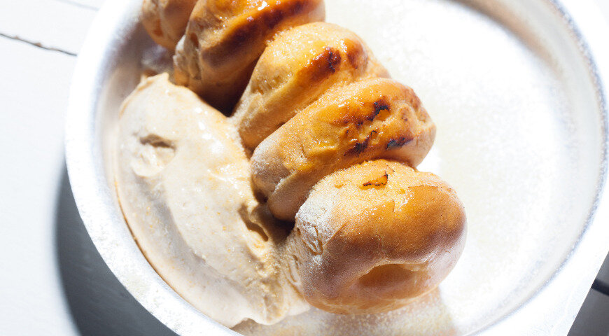 В кастрюле с толстым дном растопить сливочное масло на среднем огне, не доводя до кипения. Влить тёплое молоко и воду (около 30 °C) при постоянном помешивании. Добавить сахар и соль и тщательно размешать до полного растворения.Довести смесь до кипения и постепенно вводить муку, перемешивая венчиком. После этого использовать силиконовую или деревянную лопатку. Когда тесто начнет отходить от стенок кастрюли, снять с огня и немного охладить.Переложить тесто в миксер и замешивать несколько минут до исчезновения пара. Постепенно вводить яйца по одному, тщательно вымешивая до однородности.При помощи кондитерского мешка отсадить кольца на противень, застеленный бумагой для выпечки. Выпекать при температуре 220 °C в течение 12-30 минут, в зависимости от размера.Для начинку протрите творог через сито, добавьте половину сливок. Остальные взбейте с сахарной пудрой и соедините с творогом.Заполните готовые остывшие кольца начинкой через прокол или, разрезав пополам, соедините обратно, придавив слегка.Каждое кольцо станет настоящим украшением вашего стола и вызовет восхищение у гостей.