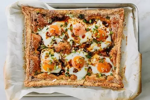В поисках вдохновения для быстрого и эффектного завтрака многие обращаются к восточной кухне. Сегодняшний рецепт — это удивительное сочетание классического слоёного теста, яиц и различных пряностей. Это блюдо легко приготовить, а выглядит оно поистине изысканно!