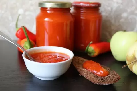 Этот соус, вдохновлённый азиатской кухней, подарит вашему столу яркие вкусы и изысканный аромат. Основным ингредиентом является сладкий перец. Вместо яблок для него идеально подойдёт яблочное пюре, которое можно получить из яблочного желе. Если пюре нет, стоит просто использовать очищенные яблоки, избавившись от кожуры и семян.