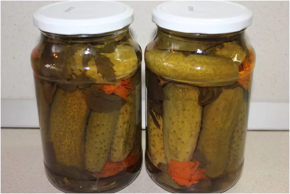 Необычное сочетание: маринованные огурцы с бархатцами на зиму
