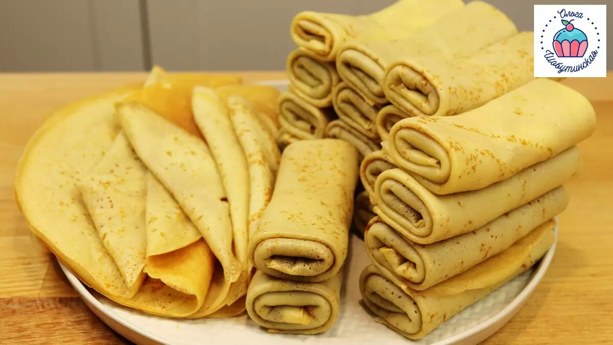 На выходе получится 26 блинчиков диаметром 22 см, которые идеально подойдут для любой начинке.