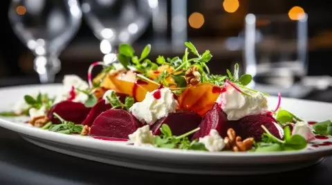 - Свекла с козьим сыром: Запеченная свекла, смешанная с нежным козьим сыром и грецкими орехами, создает ослепительное сочетание. Легкая заправка из оливкового масла и бальзамического уксуса придаст всему блюду особую пикантность.