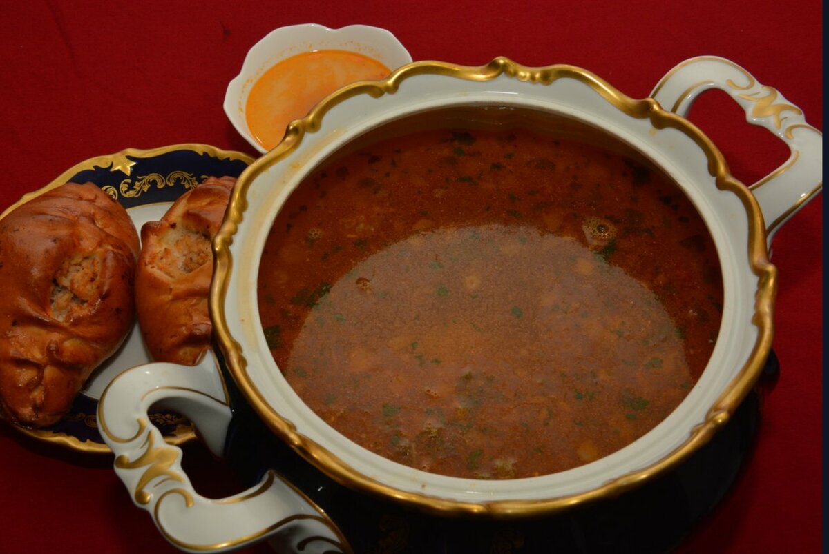 После приготовления бульон следует процедить, а утку оставить для дальнейшего использования в калье. В это время очищенные и нарезанные овощи (огурцы, лук, морковь, свекла и репа) обжаривают на растительном масле, пока не станут мягкими. Затем к ним добавляют огурцы и стакан рассола, накрывают крышкой и тушат 20 минут.