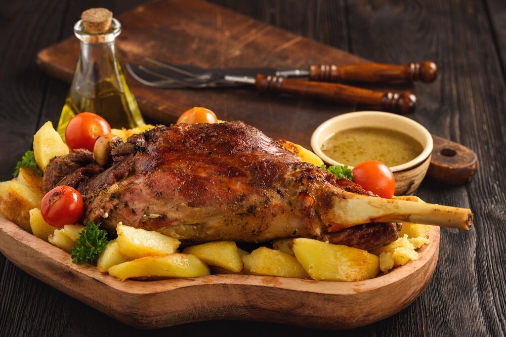 Вкусный рецепт запеченной бараньей ножки с картофелем